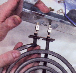 ❹ Сделайте фото схемы подсоединения проводов. А затем отсоедините внутреннюю проводку, прикрепленную к контактам конфорки.